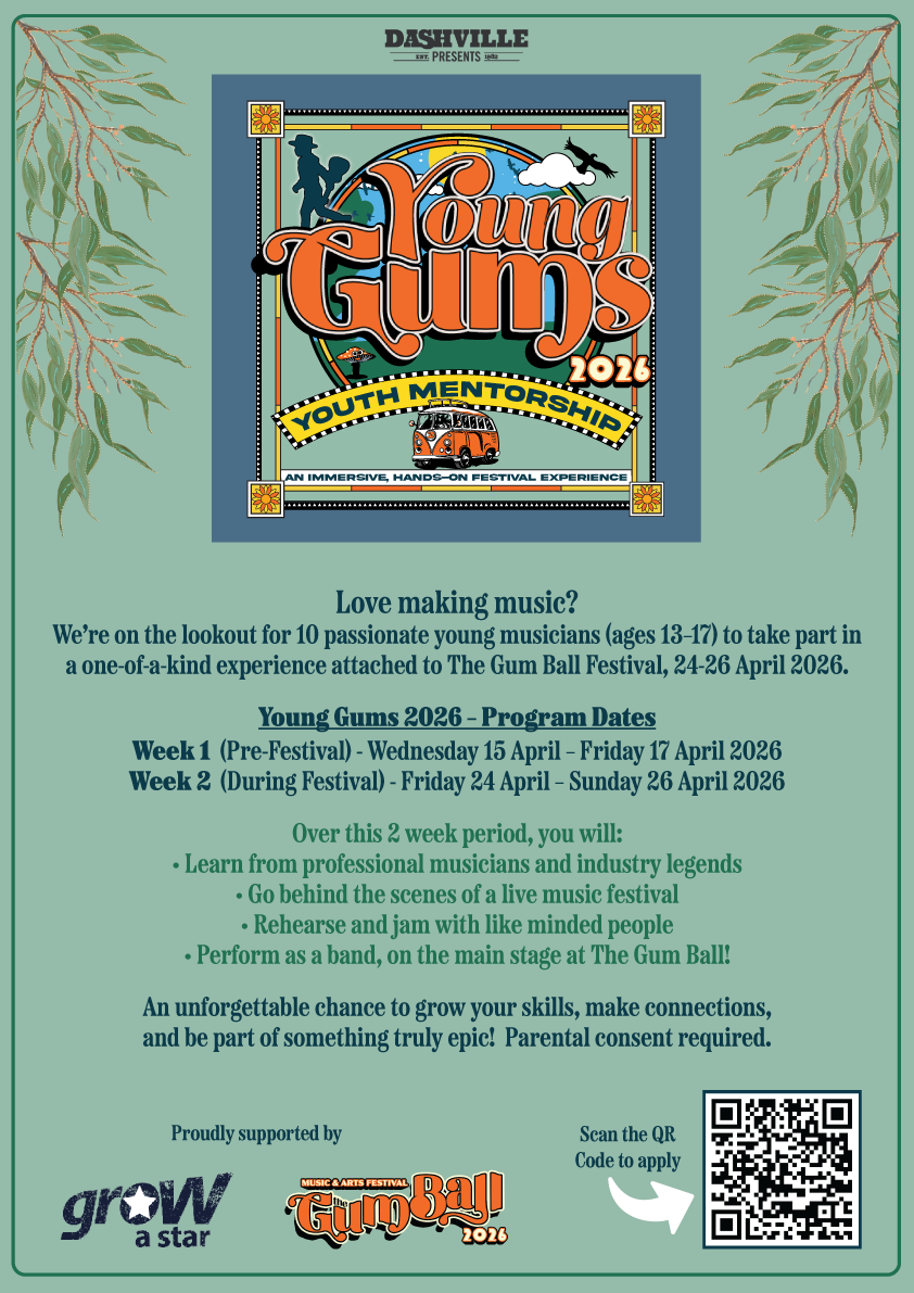 Young Gums is a mentorship program, led by the good people at Dashville and supported by The Gum Ball's professional and creative community of musicians, artists, technicians and event managers.